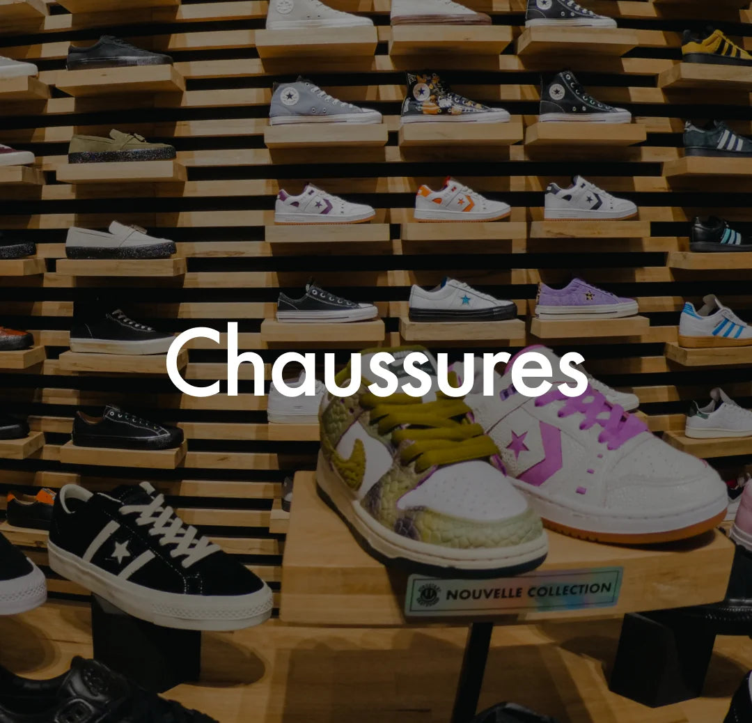 Dotre boutique dispose d’une gamme complète pour s’équiper des pieds à la tête avec une sélection des plus grandes marques de chaussures de skate et de fringues : Nike SB, Adidas Skateboarding, Vans, Converse ou encore Carhartt WIP ; mais également des collections plus pointues telles que Hélas, Hockey, Polar Skate Co ou Stüssy.